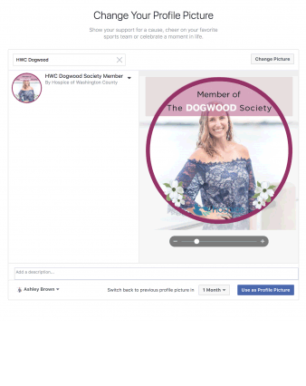 Search for a frame by entering the frame's keyword or "HWC." As shown below, for those who become a Dogwood Society Member, they can search the keyword "HWC Dogwood" and that frame will appear.