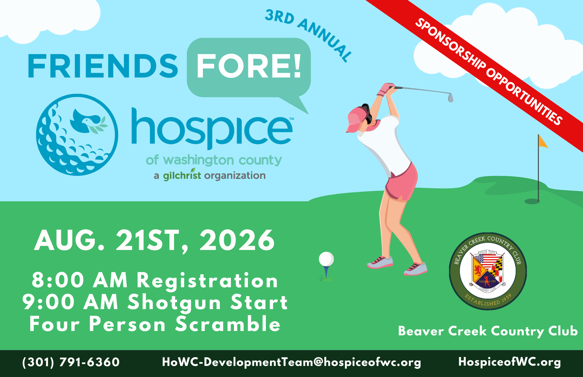 Welcome to our Third Annual “Friends Fore Hospice” benefiting Hospice of Washington County. Your generosity enables us to continue providing high-quality, compassionate end-of-life care to our community, regardless of anyone’s ability to pay. Our mission is to offer dignity, comfort, and support during life’s most vulnerable moments, and you play a meaningful role in making that possible.